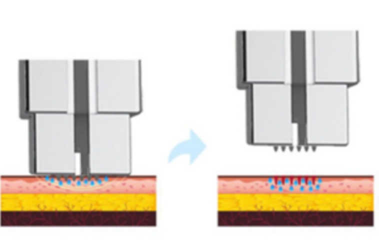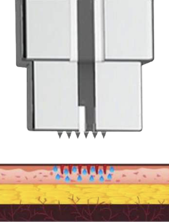 Aplikatörün nano-çip kısmında yer alan mikrokristallerin cilt bariyerinde su kanalları oluşturması